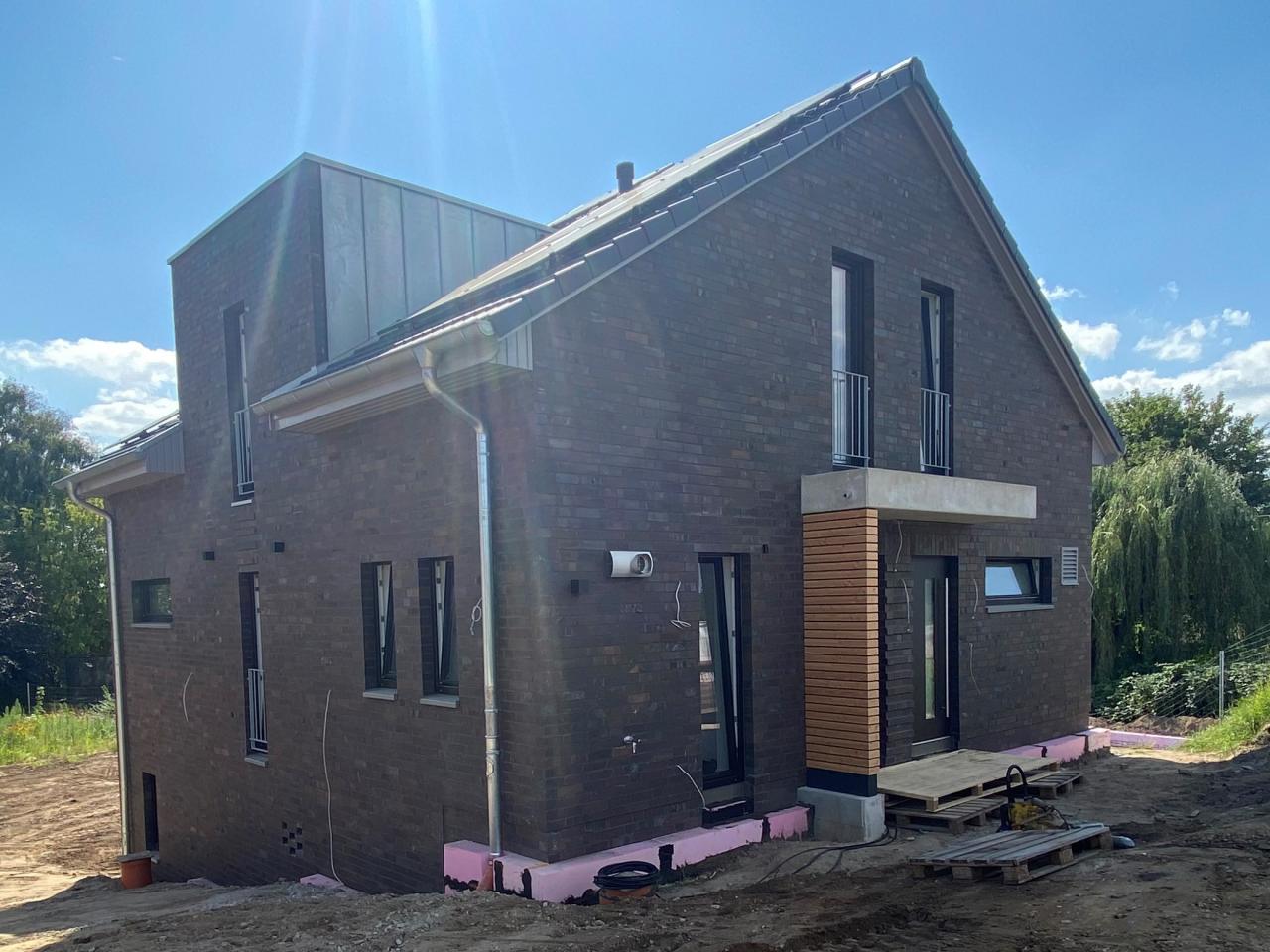 • Verblendfassade mit modernen dunklen Steinen
